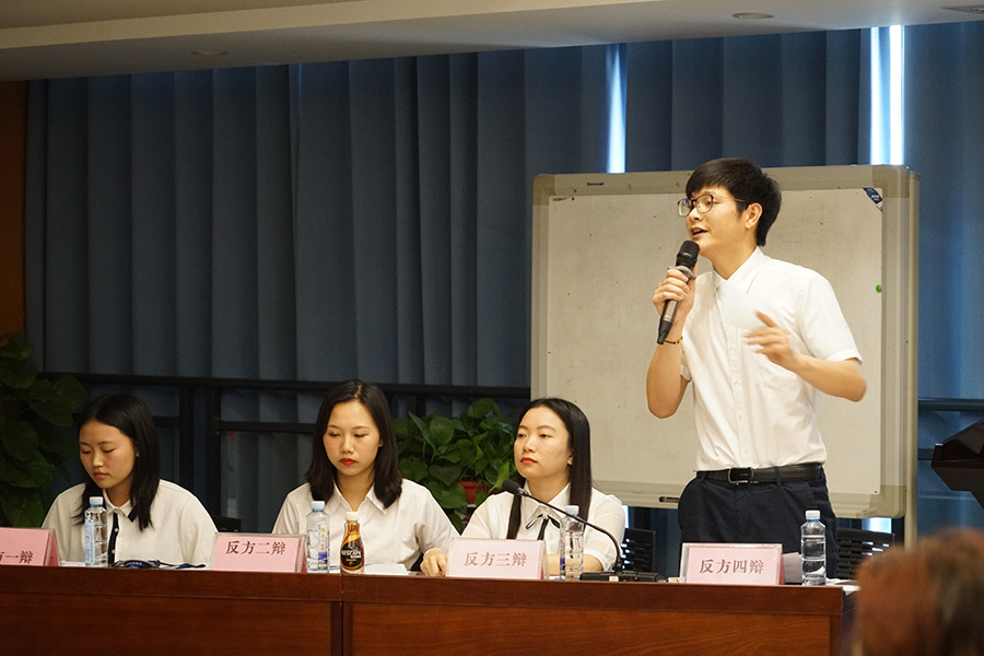 比賽現(xiàn)場,正反雙方你來我往,毫不相讓。時而妙語連珠,詼諧幽默,令人捧腹;時而慷慨激昂,擲地有聲,令人憤懣。雙方辯手清晰的思路和巧妙的陳詞給觀眾留下了深刻印象。