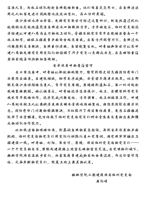 二等獎(jiǎng):唐際晴《黨旗作帆破浪行——桂林學(xué)院工地的紅色堡壘》