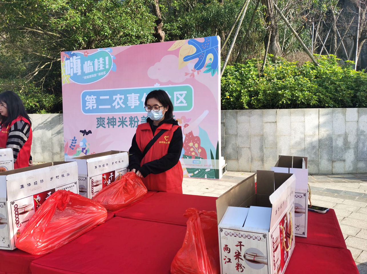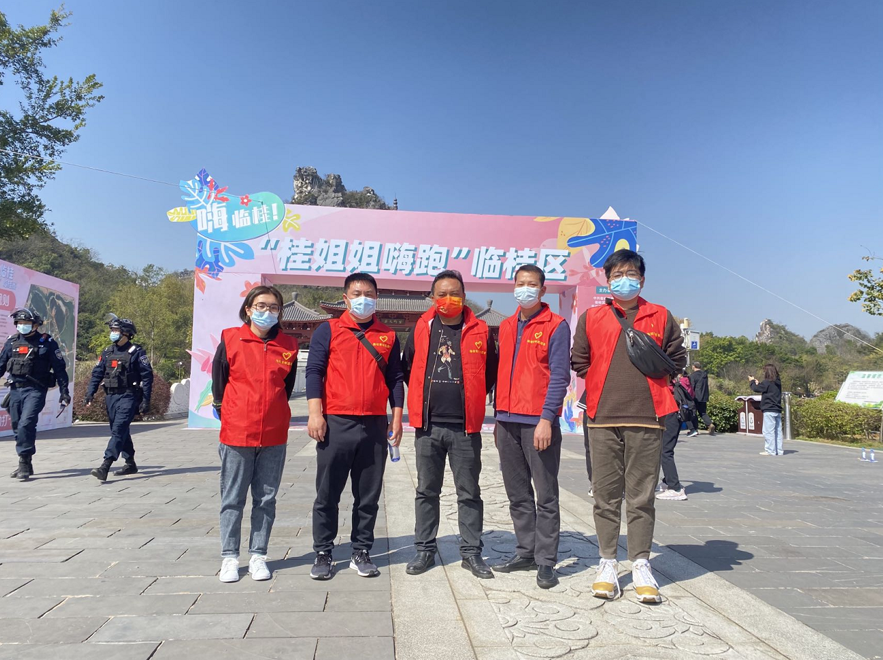 積極分子、共青團員參加“嗨?臨桂!”——“女神酷跑”活動志愿服務。