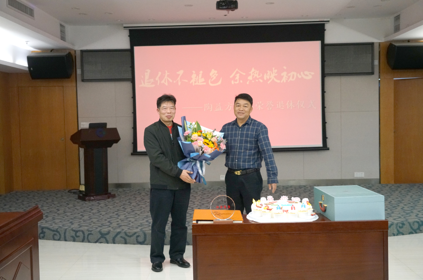 隨后,集團公司領(lǐng)導(dǎo)向陶益方同志贈送退休禮物、相冊及鮮花,切蛋糕并合影留念。